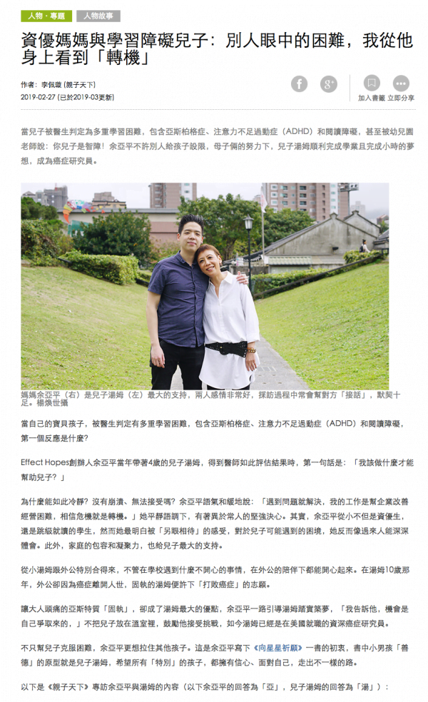 International media exposure on A Wish For Zander – a bedtime storybook which contains 50+1 inspiring stories of overcoming learning challenges for children with special needs. Available in English and Traditional Chinese.